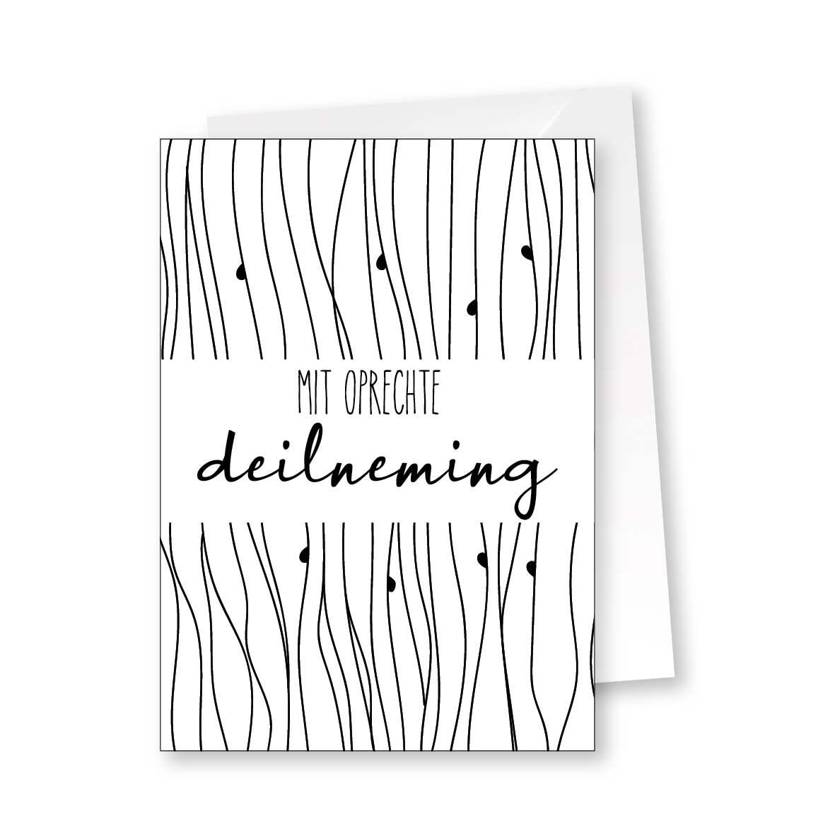 Deze zwart/wit kaart is dubbelgevouwen een A6 formaat. De binnenkant is blanco, genoeg ruimte voor een persoonlijke boodschap. De kaart is geprint op stevig natuurkarton met een matte uitstraling en wordt geleverd met een envelop.